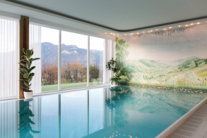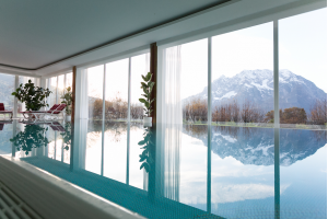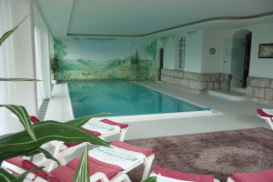 Indoor-pool, mit mittels Erdwärme auf 28° temperiertem Hochquell-Wasser,