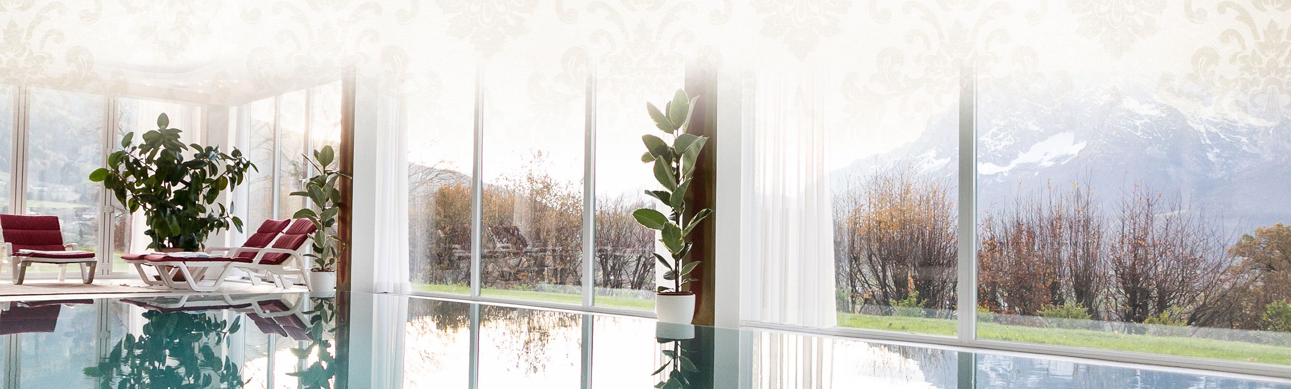 Indoor-pool, mit mittels Erdwärme auf 28° temperiertem Hochquell-Wasser,