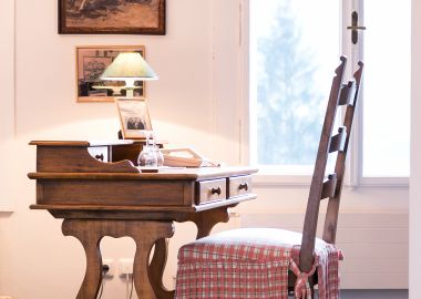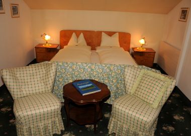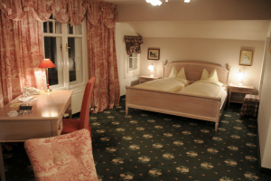 Geräumige Familien-Suite, 35m², Vorzimmer-Garderobe, kuschelige Schlafecke, großzügige Sitz-Gruppe mit ausziehbare Couch  (2 Personen), Schreibtisch, TV, begehbare Schrank-Garderobe. Bad: Doppelwaschtisch, Badewanne, Dusche, getrenntes WC, Blick über Ennstal, nordseitigen Garten und Wiesen